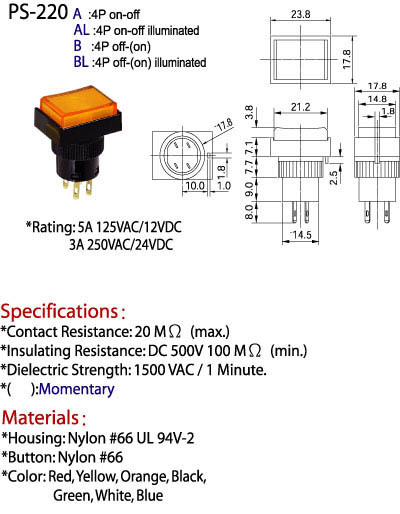 * 電氣範圍 : 3A 125 VAC / 1A 250 VAC.