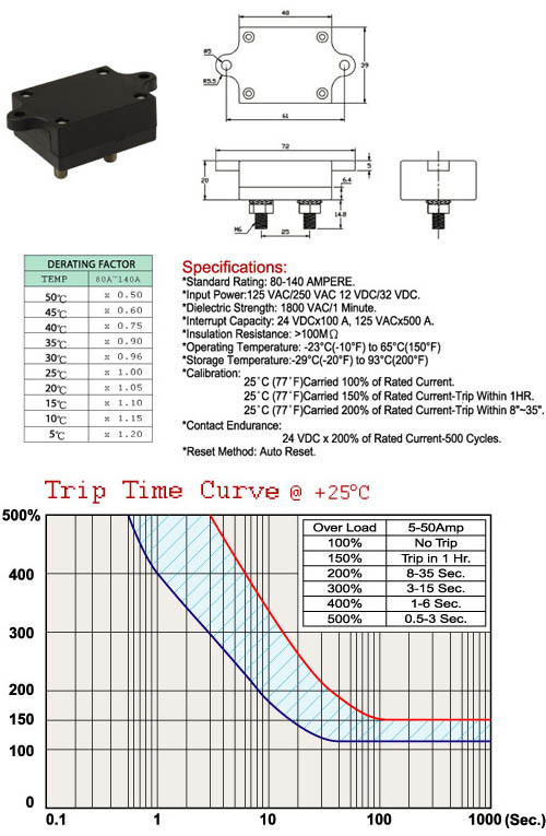 1. 額定電流 (電流範圍) : 80-140 AMP