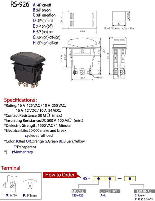 * 電氣範圍 : 16A 125 VAC / 10A 250 VAC