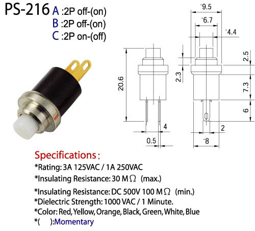 * 電氣範圍 : 3A 125 VAC / 1A 250 VAC.