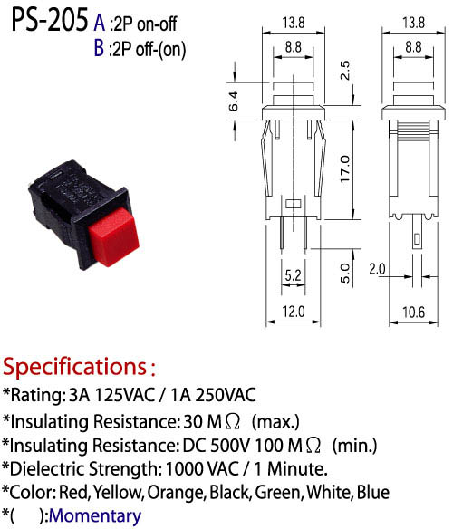 * 電氣範圍 : 3A 125 VAC / 1A 250 VAC.