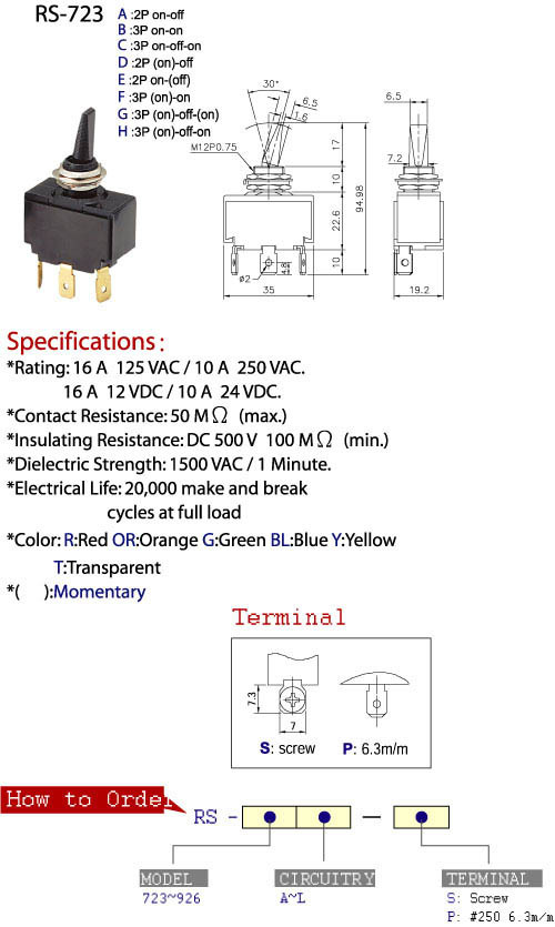 * 電氣範圍 : 16A 125 VAC / 10A 250 VAC
