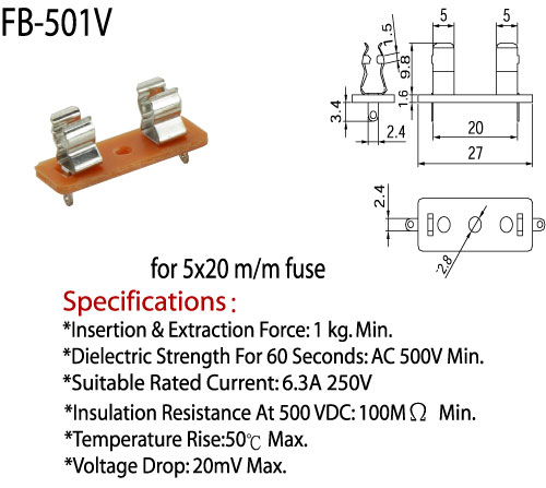 * 適用保險絲 : 5.0mm X 20mm  / 6.3mm X 32mm