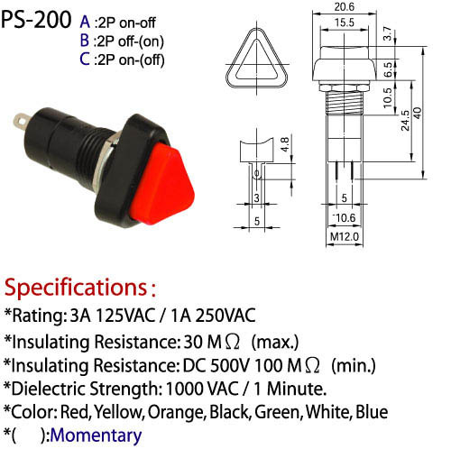 * 電氣範圍 : 3A 125 VAC / 1A 250 VAC.