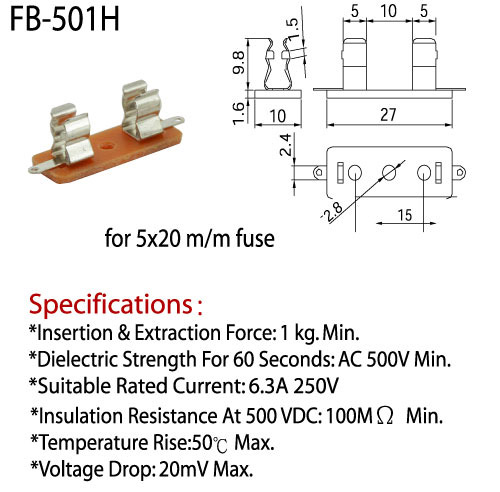 * 適用保險絲 : 5.0mm X 20mm  / 6.3mm X 32mm