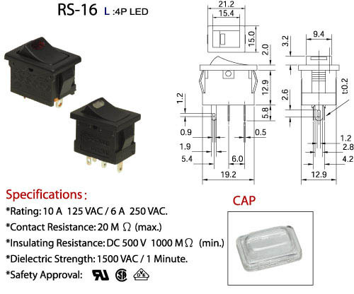* 電氣範圍: 10 A 125 VAC/ 6A 250 VAC.