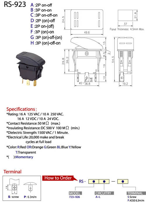 * 電氣範圍 : 16A 125 VAC / 10A 250 VAC