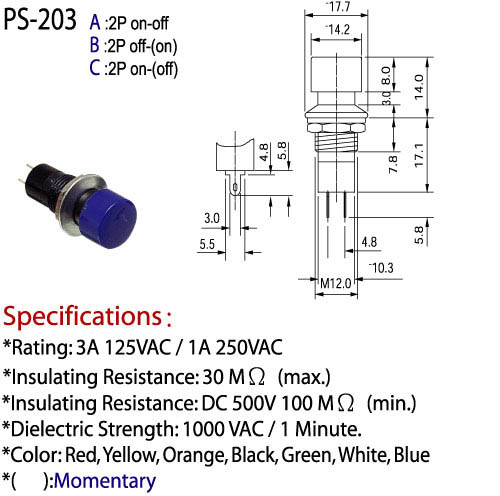 * 電氣範圍 : 3A 125 VAC / 1A 250 VAC.