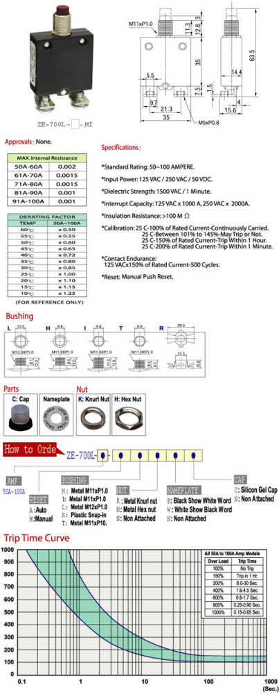 1. 額定電流 (電流範圍) : 50-100 AMP