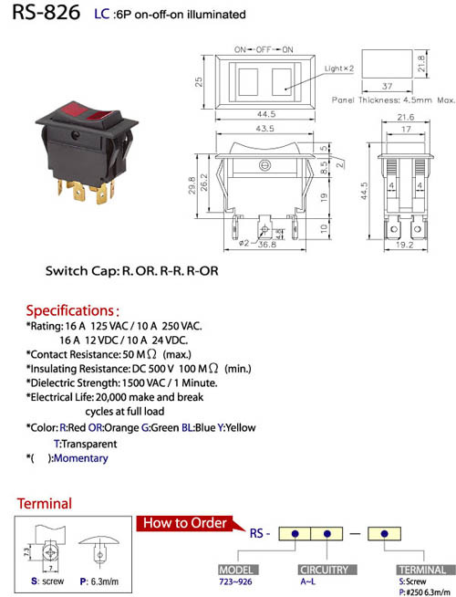 * 電氣範圍 : 16A 125 VAC / 10A 250 VAC