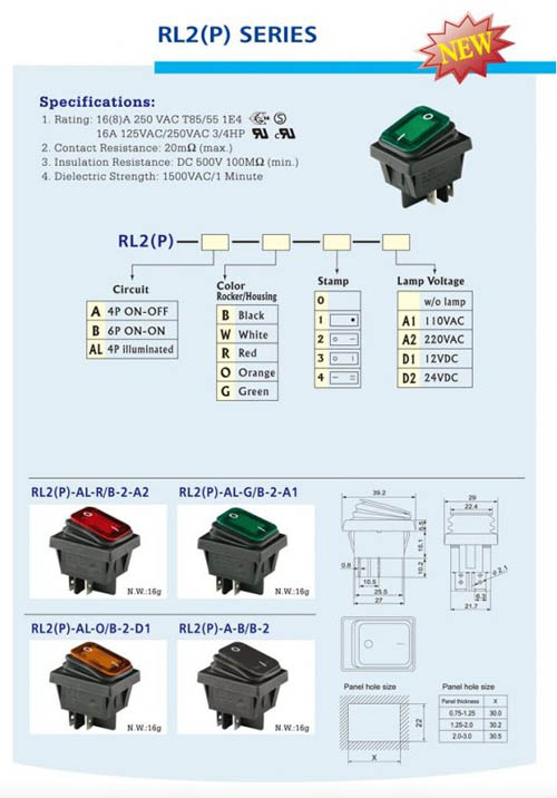 * 電氣範圍: 10 A 125 VAC/ 6A 250 VAC.