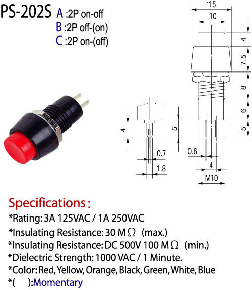 * 電氣範圍 : 3A 125 VAC / 1A 250 VAC.