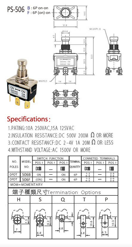 * 電氣範圍 : 3A 125 VAC / 1A 250 VAC.
