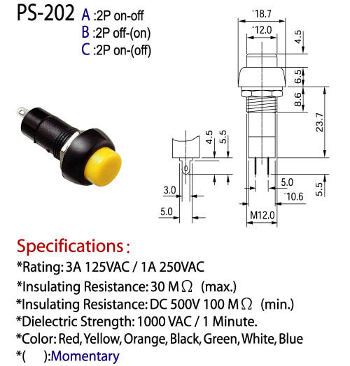 * 電氣範圍 : 3A 125 VAC / 1A 250 VAC.