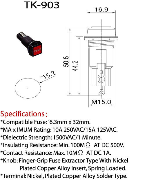 * 適用保險絲 : 5.0mm X 20mm  / 6.3mm X 32mm