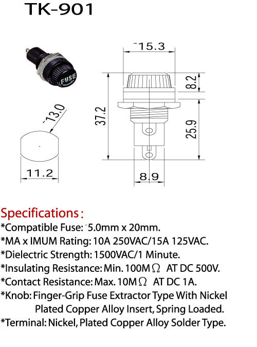 * 適用保險絲 : 5.0mm X 20mm / 6.3mm X 32mm