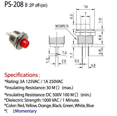 * 電氣範圍 : 3A 125 VAC / 1A 250 VAC.
