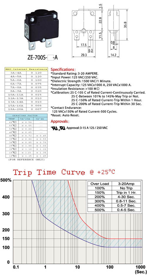 3. 跳脫時間 : Over Load 200% 4-30秒