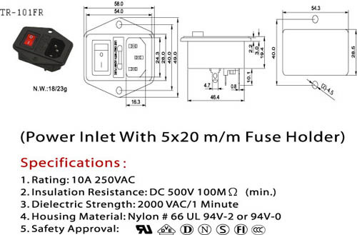 * 電氣範圍 : 10A 250 VAC/ 15A 250 VAC.