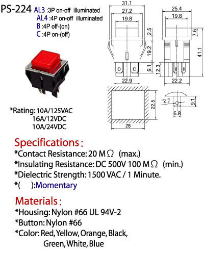 * 電氣範圍 : 3A 125 VAC / 1A 250 VAC.