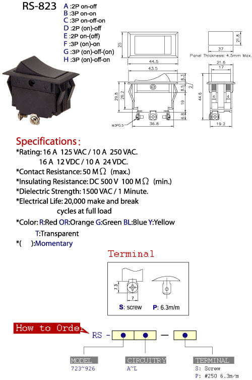 * 電氣範圍 : 16A 125 VAC / 10A 250 VAC