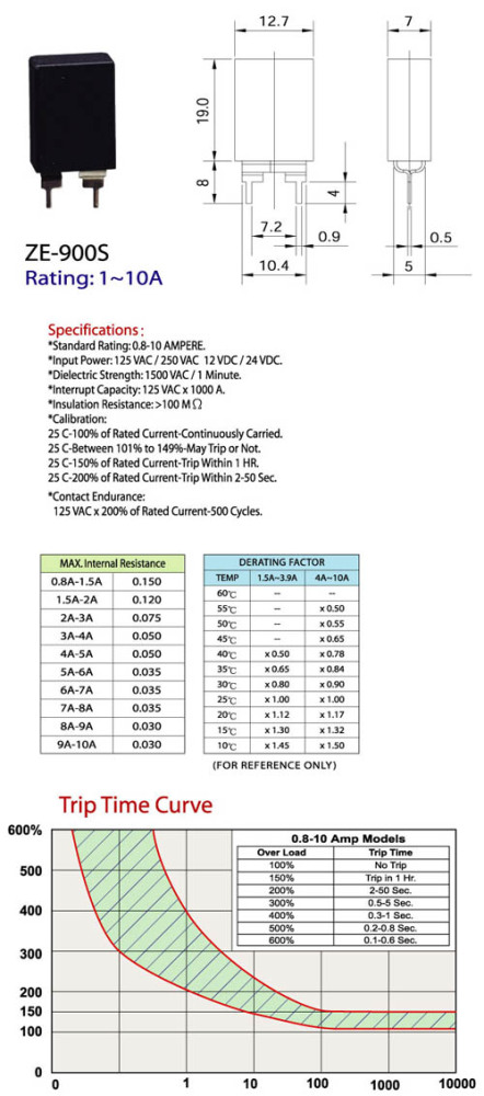 1. 額定電流 (電流範圍) : 0.8-10 AMP