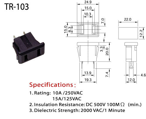 * 電氣範圍 : 10A 250 VAC/ 15A 250 VAC.
