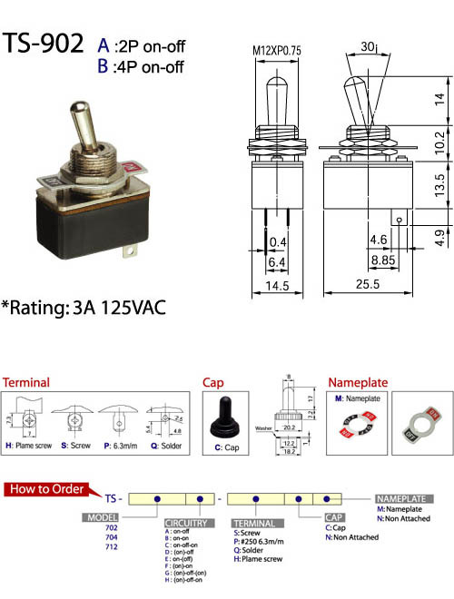 多樣設計:專吉精密工業股份有限公司提供TS-902迷你搖頭開關的多樣化設計