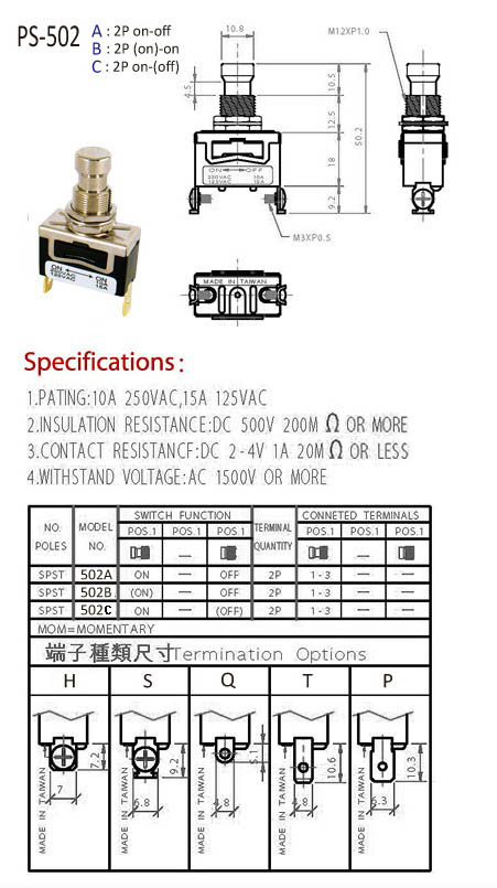 * 電氣範圍 : 3A 125 VAC / 1A 250 VAC.