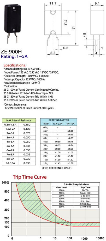 1. 額定電流 (電流範圍) : 0.8-10 AMP