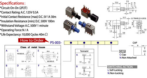 * 接觸電阻 : 30 MΩ (max).